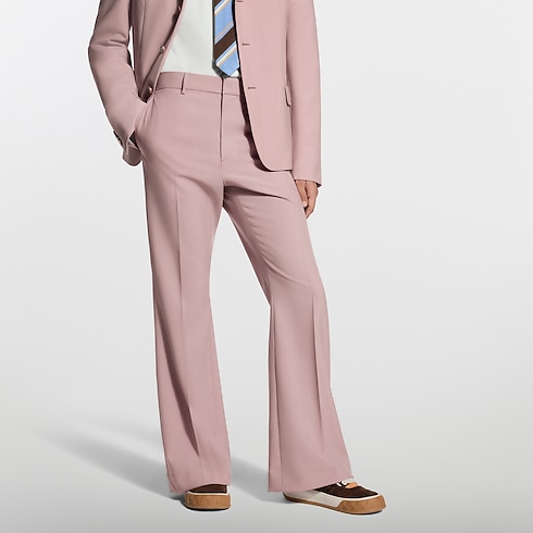 這款喇叭長褲源自印度風格2026春夏系列,以精緻的羊毛剪裁,呈現優雅的柔粉色調。Louis Vuitton Paris字樣低調地刺繡於後口袋上方,臀部則點綴有鈕扣的翻蓋口袋。這款長褲可輕鬆搭配本季細膩色調,亦可與同系列外套組成西裝造型。