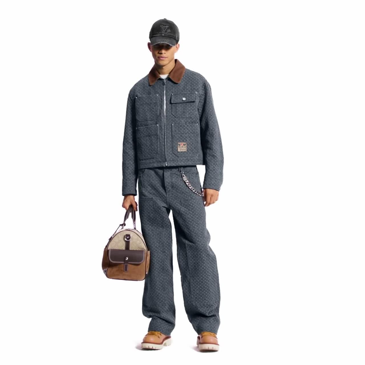 這款深灰色有機棉工裝服長褲以饒富質感的微壓花面料裁製,綴有2025秋冬時裝秀的Dandy Monogram提花圖案。寬鬆版型配以牛仔褲口袋和護腿套褲,加上珍珠效果鈕扣,更添精緻的時尚考究氣息。長褲可搭配同系列套裝外套,締造休閒出眾的整體造型。