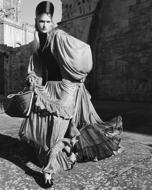由 Nicolas Ghesquière 設計的 Cruise 2026 早春系列展開跨越世紀的創意碰撞,將中世紀的莊嚴氣派與華麗搖滾的耀眼叛逆風格巧妙結合。