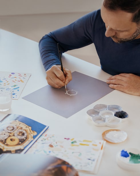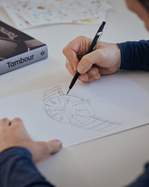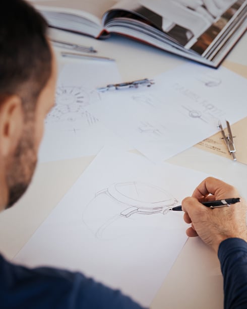 設計師以鉛筆畫出設計草圖,然後以水粉或水彩為設計添上生動的色彩。每一道曲線、每一個形狀、每一個細節也經過多次修改,逐漸呈現全新腕錶設計的輪廓。在這一刻,平面的設計變成立體模型,在新舊元素、藝術表達與嚴謹技術之間開啟精彩旅程,直至製成品矚目誕生。