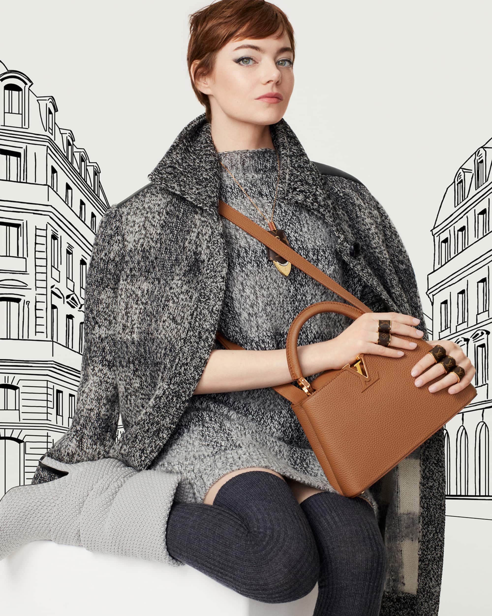 品牌大使鄭浩妍及 Emma Stone 優雅演繹 Capucines 包包,向路易威登的發源地致敬,集經典魅力與優雅風格於一身的設計,完美結合品牌的深厚傳統與現代典雅韻味。