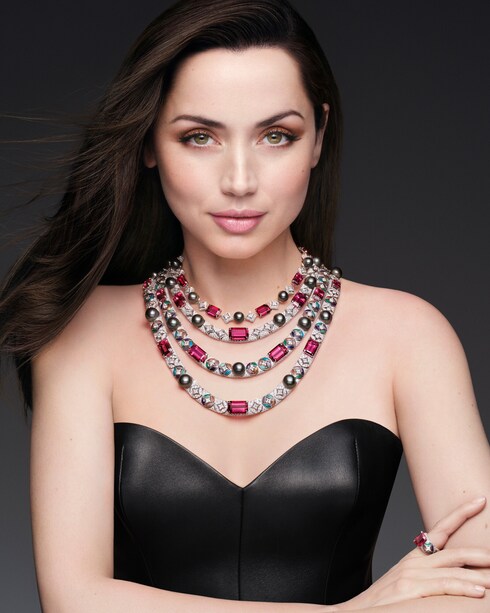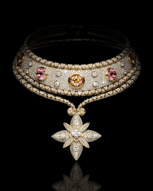 Aura 主題利用柔美粉色和鮮明對比,頌揚品牌標誌性的 Monogram Flower 花卉圖案,以明亮光彩向女性的優雅氣質致敬。雙色碧璽同時代表力量和嬌柔精緻,描畫出璀璨的創意光環,引領珠寶匠人踏上全新的啟蒙之路,探索全新的視野。