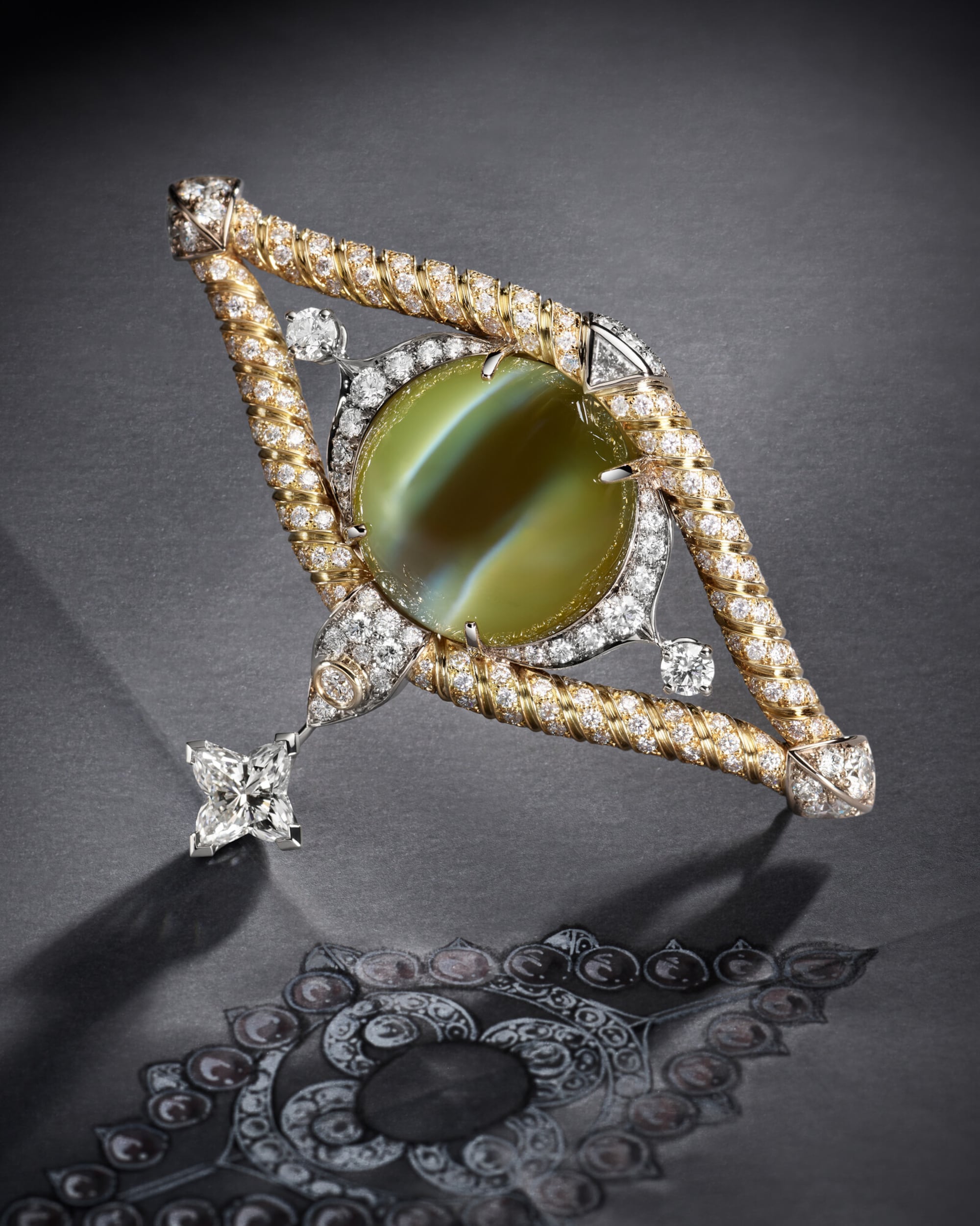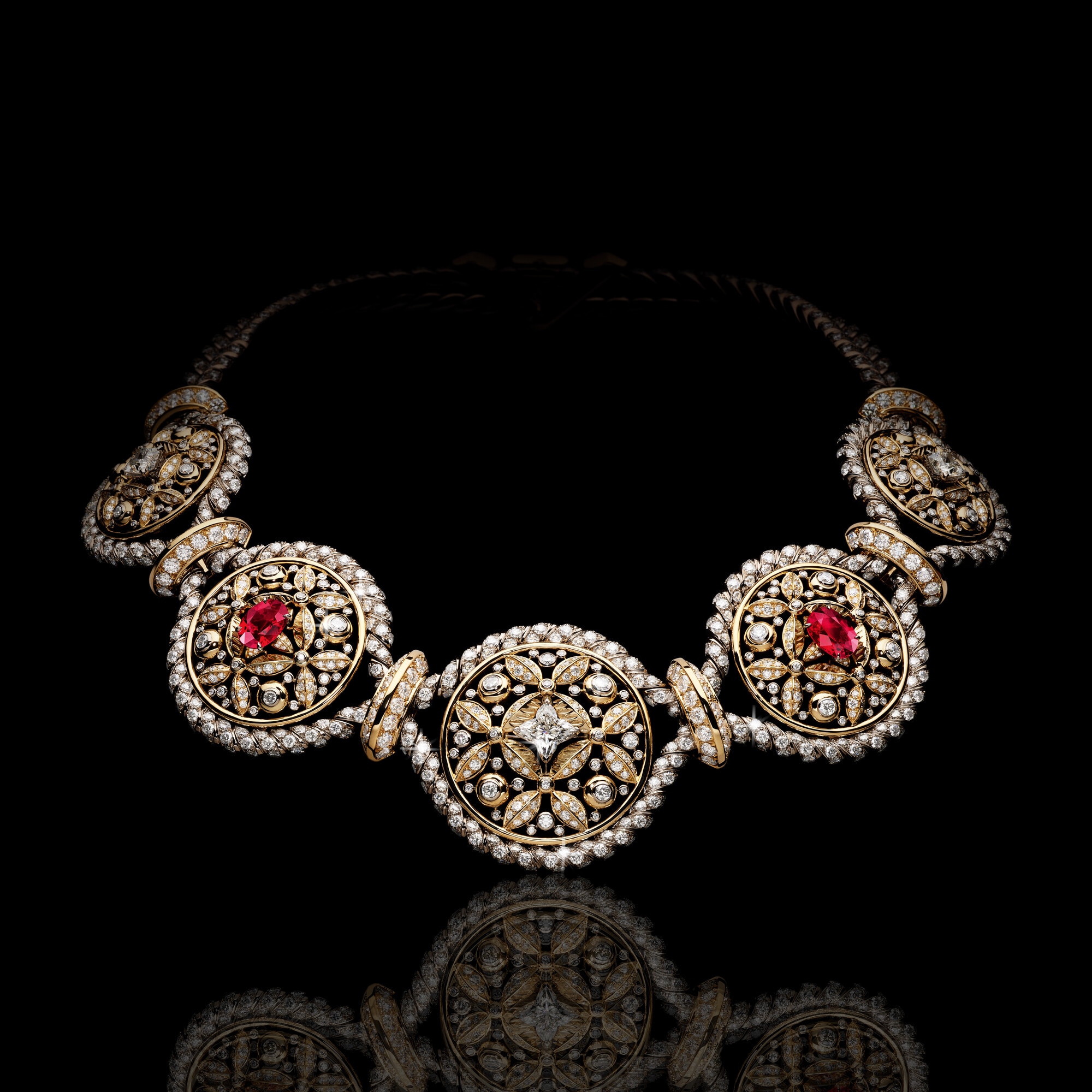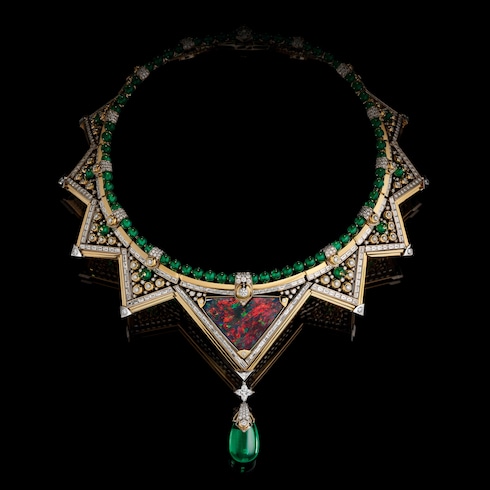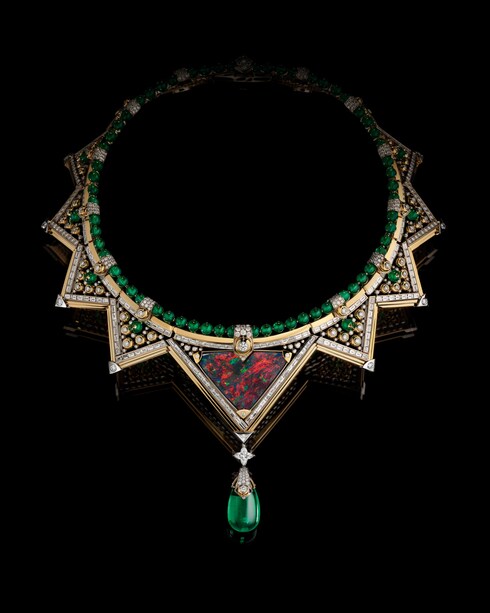 Savoir 主題將祖傳工藝與現代設計結合,令人想起傳承的力量及路易威登的經典 V 形圖案。一顆重達 30.56 克拉的黑蛋白石在色彩絢麗的項鏈上綻放炫目光芒,其曲線和角度也呼應代表知識和智慧的三角形,展現高雅和諧的美感。