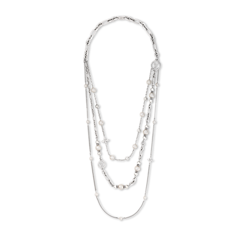 長項鍊是精品項鍊與吊墜系列中的代表作,垂墜感能修飾頸部線條,展現精緻層次感。如 Heirloom Pendant 項鍊採用彩色鋯石、LV Circle 標誌及 Monogram 花卉圖案,搭配鈀飾面金屬鏈帶。這款奪目的頸飾適合疊戴,適合搭配高領或簡約服飾,展現活力個性的造型。另一款Monogram Heritage 吊墜項鍊系列亦極具造型感,中央為 Monogram 帆布鑰匙套,內含兩個金色鑰匙墜飾,展現個人魅力。
